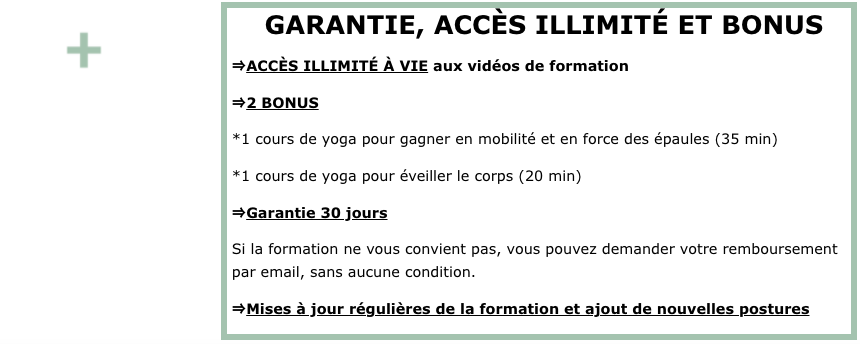 - Garantie 30 jours + bonus spécifiques + mises à jour régulières